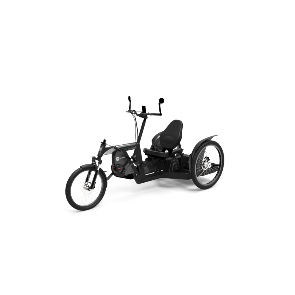 Indimob naked è un triciclo per adulti elettrico; la pedalata è assistita da un motore Bosch con autonomia fino a 140 km in condizioni ottimali e di 40 km in condizioni di massimo carico